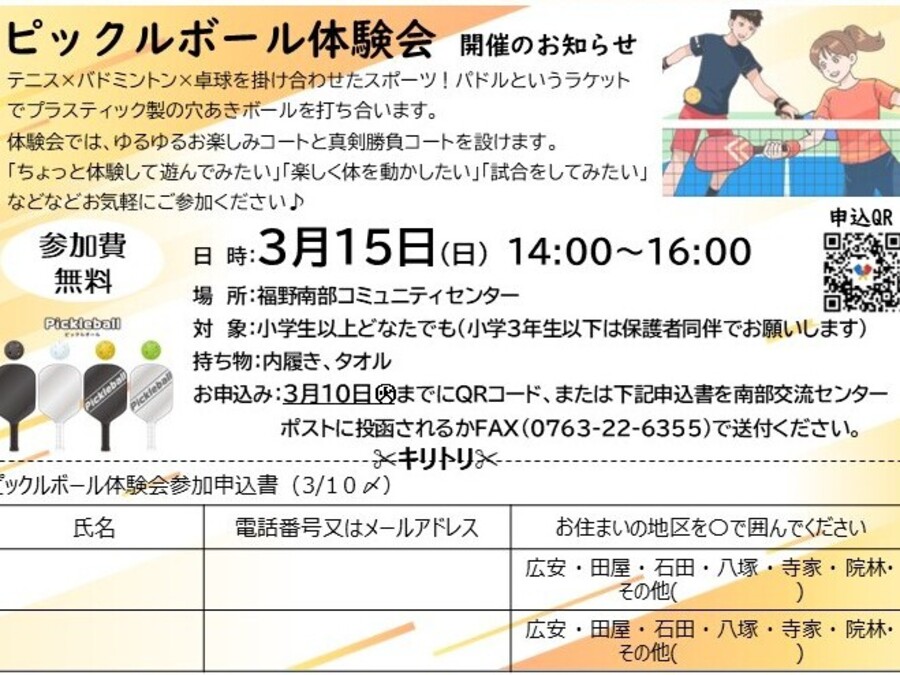 ピックルボール体験会 福野南部地域づくり協議会